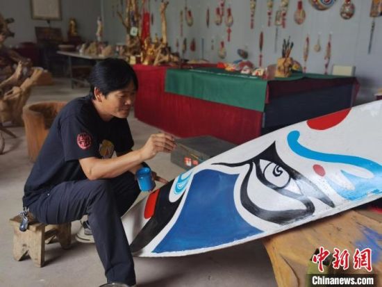 取材、挖空、刨光、勾線、著色……經(jīng)過這些步驟,一個(gè)馬勺臉譜就完成了。馬勺臉譜由中國(guó)民間社火臉譜演化而來,已有數(shù)千年歷史,系列產(chǎn)品主要包括馬勺臉譜、梭子臉譜、鏟子臉譜、木锨臉譜等。9月初,甘肅省隴南市徽縣馬勺臉譜的省級(jí)傳承人馬龍,依舊在工作室創(chuàng)作。今年47歲的他,堅(jiān)守馬勺臉譜的制作技藝已有20余載,不僅傳承了社火臉譜和京劇臉譜的古韻,而且創(chuàng)新了貼金、刻繪等技藝,在傳統(tǒng)中融入了現(xiàn)代造型和色彩元素。它的作品在網(wǎng)絡(luò)引起熱議:“臉譜畫在梭子上,厲害了。”“寶藏非遺,期待下次打卡。”
