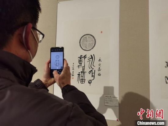圖為觀展者用手機(jī)記錄傳拓技藝。 崔琳 攝