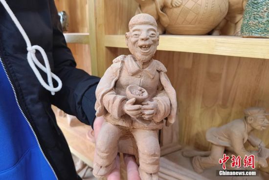 圖為泥塑作品展現(xiàn)人們娛樂(lè)場(chǎng)景。 劉玉桃 攝