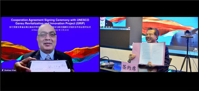 與創(chuàng)新項(xiàng)目與聯(lián)合國教科文組織技術(shù)援助合作協(xié)議簽約儀式,旨在運(yùn)用甘肅文化和創(chuàng)意資源推進(jìn)文化遺產(chǎn)保護(hù)傳承與創(chuàng)新發(fā)展。