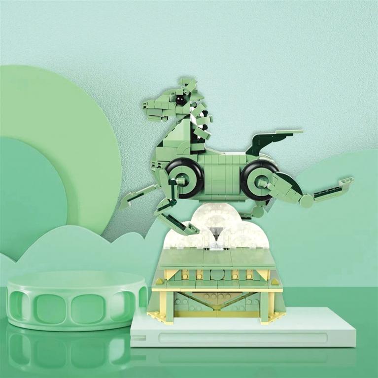 中國(guó)甘肅網(wǎng)6月23日訊 據(jù)蘭州晚報(bào)報(bào)道 在萬物皆可“盤”的世界里,素來只有想不到?jīng)]有做不到。近日,由甘肅省博物館推出的首款銅奔馬立體積木再次“出圈”,成為年輕人愛不釋手爭(zhēng)相“盤”玩的文創(chuàng)對(duì)象。