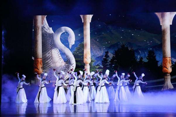 全劇通過極具民族特色和地方特色的舞蹈,展現(xiàn)了從西北大漠到江南水鄉(xiāng)的自然景觀和人文風貌,再現(xiàn)了古絲綢之路上各民族通過商貿(mào)往來增進友誼的繁榮盛景。