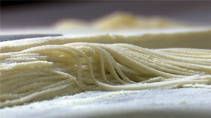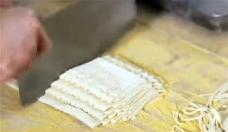 揉面最為關(guān)鍵,揉好后便是切了,靈臺(tái)方言稱(chēng)之為“犁”,講究眼到、心到、手到,寬窄相等,粗細(xì)合適。