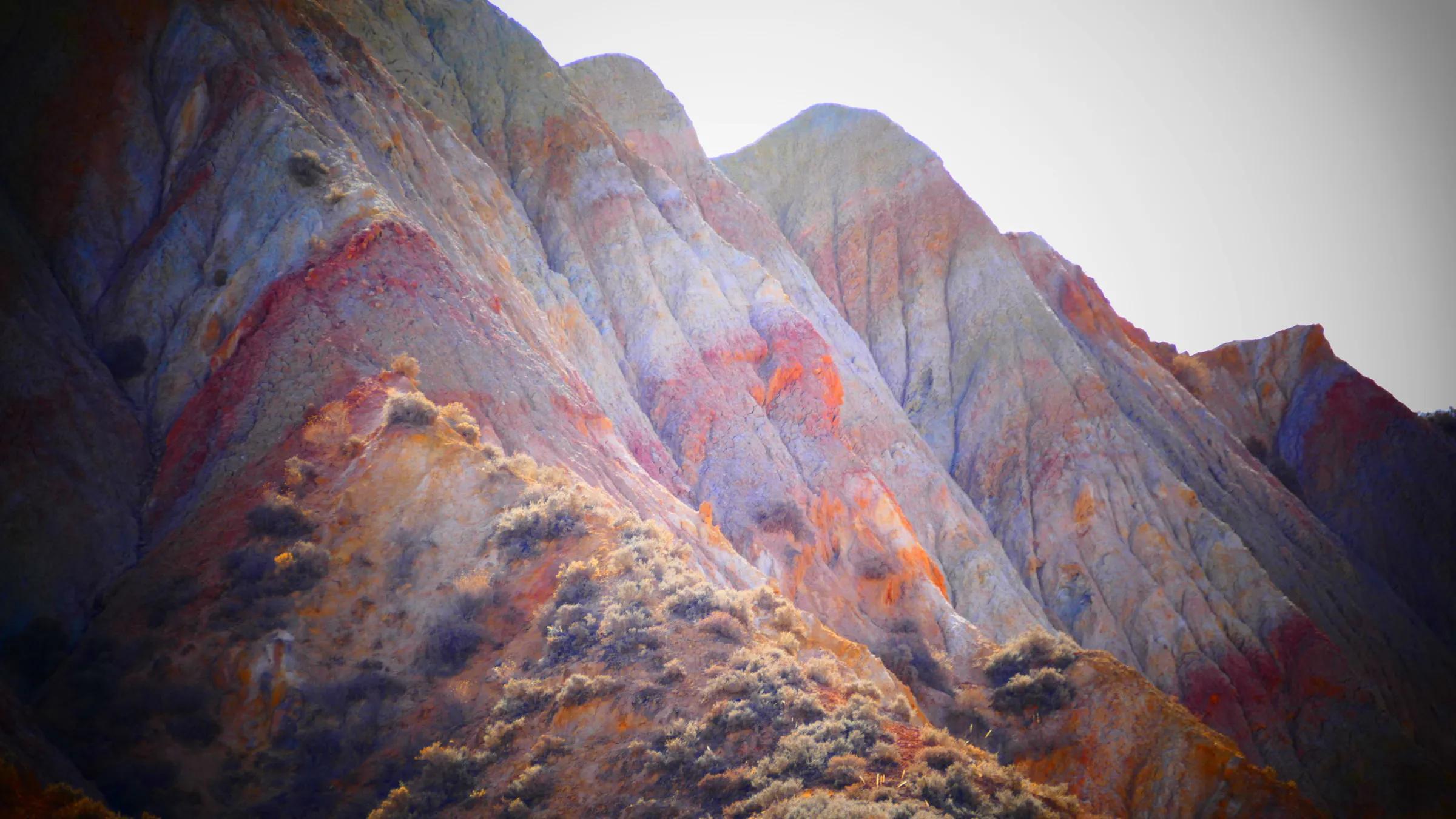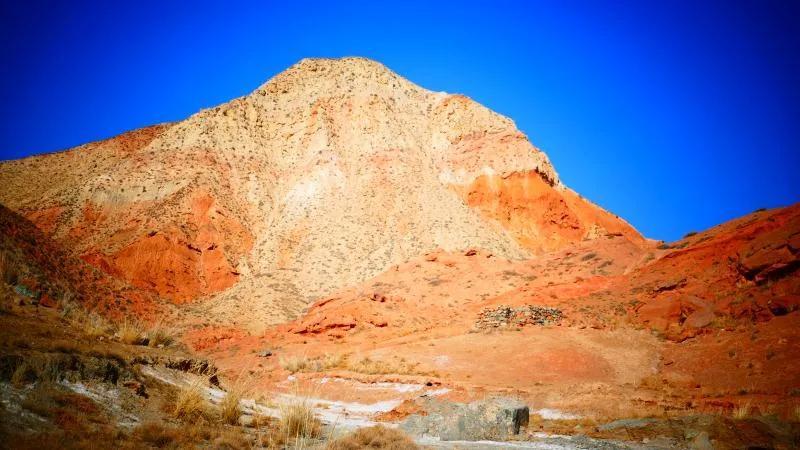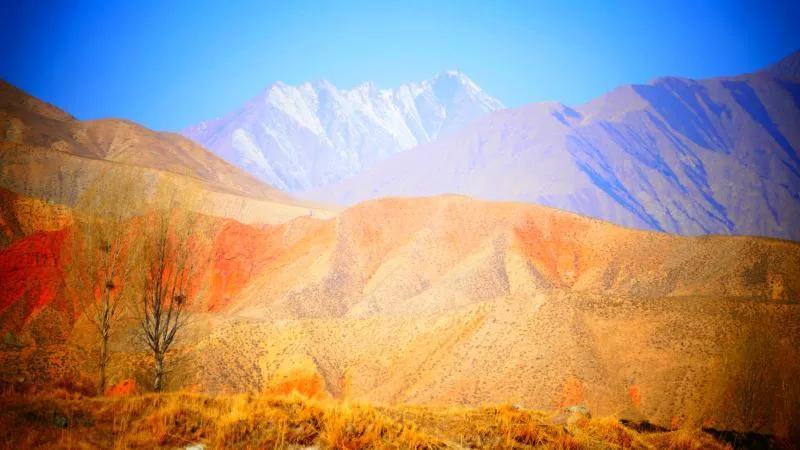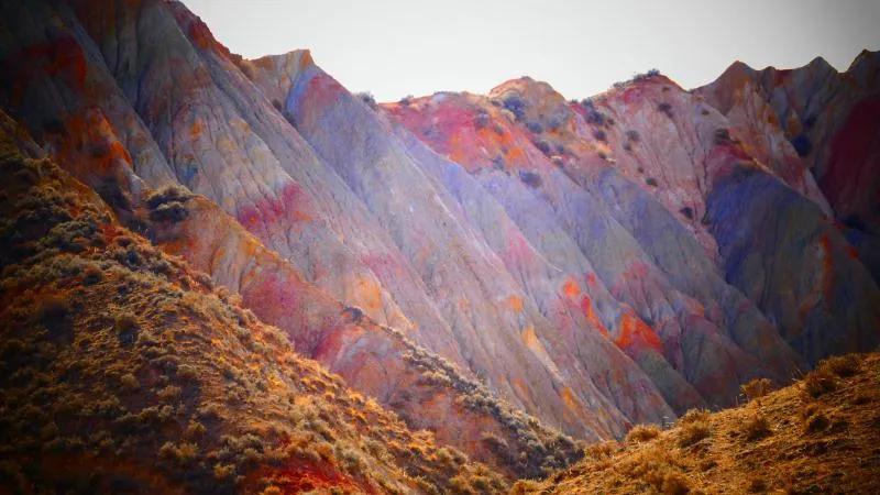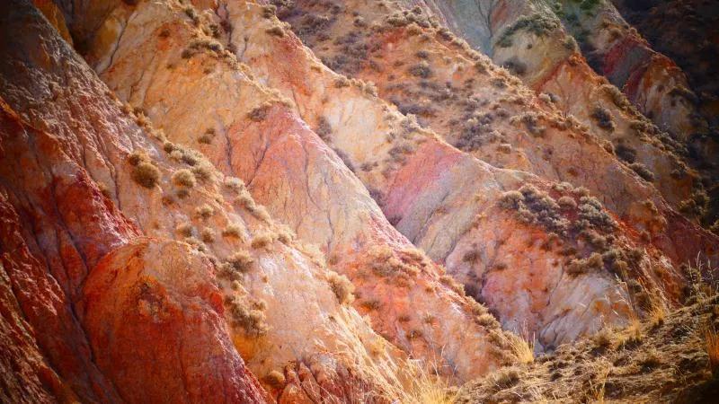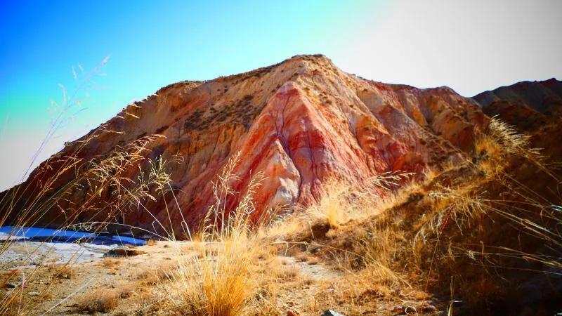 從馬營(yíng)河大峽谷南端再向南一眼望去就是祁連雪山,沿著河道通過(guò)高臺(tái)縣新壩鎮(zhèn)的紅沙河村,向東南走進(jìn)祁連山脈可見(jiàn)一片五顏六色的奇觀,又一個(gè)丹霞地貌在祁連山展現(xiàn),可稱(chēng)高臺(tái)“小泉丹霞〞。據(jù)說(shuō)這個(gè)“丹霞”還沒(méi)有媒體“曝過(guò)光〞。