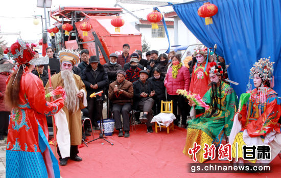 中新網(wǎng)甘肅新聞2月8日電 (朱玲)農(nóng)歷正月,走進(jìn)華亭市西華鎮(zhèn)西塬村,山村隱掩處,遠(yuǎn)遠(yuǎn)聽(tīng)聞古樸蒼勁的戲曲腔調(diào)傳來(lái)。村部院落里,村民或站或蹲,里三層外三層地將表演者圍了個(gè)水泄不通。