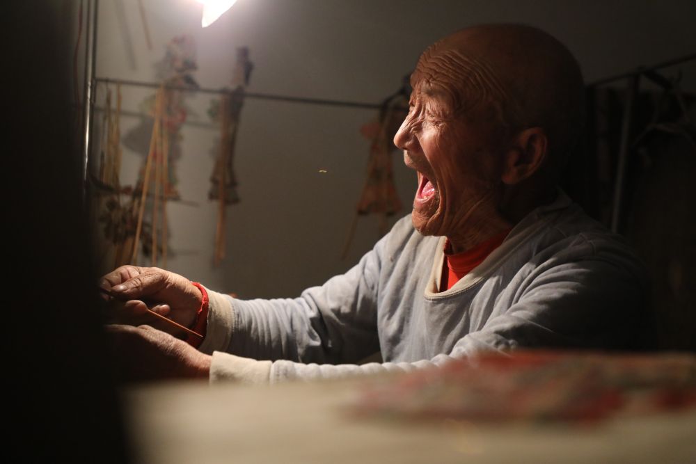 敬廷佑正在進行道情皮影表演。新華社記者 張睿 攝