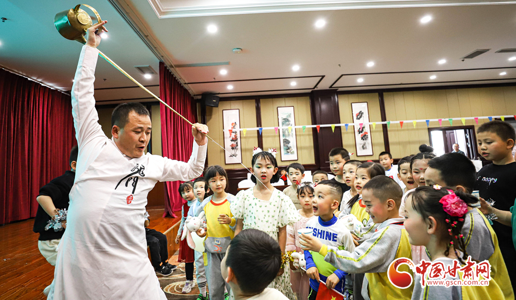 5月28日,甘肅張掖河西學(xué)院附屬張掖人民醫(yī)院兒科、婦產(chǎn)科,臨床醫(yī)學(xué)院開展“童心向黨,牽手六一”主題活動,醫(yī)護人員脫下白大褂和小朋友、家長一起過“六一”。活動現(xiàn)場,杖頭木偶戲、長嘴壺茶藝、變臉等非遺展演,給小朋友們留下了深刻的印象。