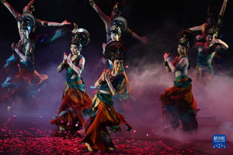 中國殘疾人藝術團演員在敦煌大劇院表演大型情景音畫劇《千手千眼》(6月18日攝)。