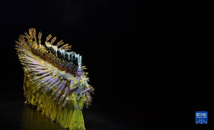6月18日晚,由中國殘疾人藝術團最新創(chuàng)排的大型情景音畫劇《千手千眼》在甘肅省敦煌市敦煌大劇院首演。該劇以中國殘疾人藝術團音樂舞蹈詩《我的夢》為藍本,依托莫高窟第3窟等敦煌壁畫元素創(chuàng)編而成。50名聽障或視障演員通過音樂、舞蹈和多媒體等形式演繹了“妙善救父”的民間故事,讓觀眾感受特殊藝術與敦煌文化的融合。