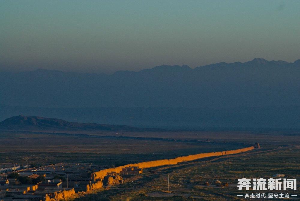 祁連山下,甘肅山丹漢明長城猶如一條巨龍蜿蜒盤旋在漫漫戈壁。
