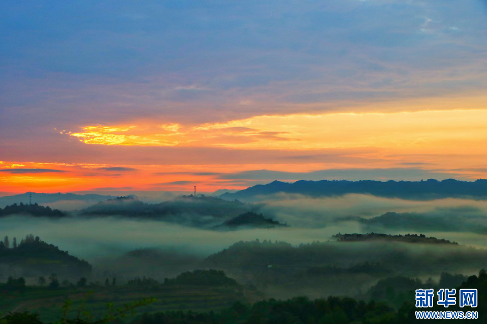 近日,甘肅省隴南市兩當縣上空云霧繚繞、煙波浩渺,縣城、山峰在霧海中若隱若現(xiàn),陽光從云霧間掠過,勾勒出一幅幅如夢如幻的美麗畫卷。新華網(wǎng)發(fā)(楊曉 攝)