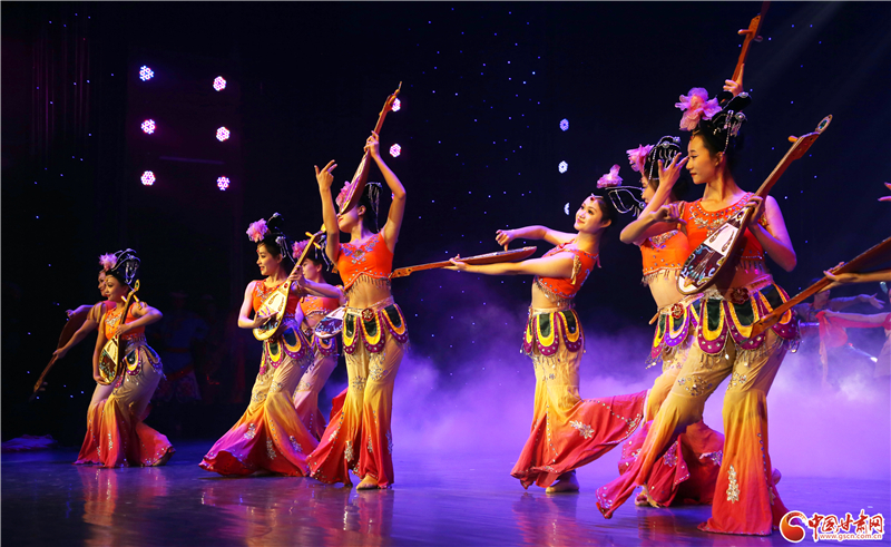除了甘肅省民族歌舞團(tuán)和西北民族大學(xué)舞蹈學(xué)院聯(lián)袂獻(xiàn)上的精彩節(jié)目外,當(dāng)晚,肅州區(qū)文化館還為觀眾奉獻(xiàn)了舞蹈《西域羯鼓》。據(jù)悉,羯鼓源自西域,狀似小鼓,兩面蒙皮,均可擊打,既能表現(xiàn)快速緊急或激烈的情緒,又可以用散淡悠長來營造靜謚雅致的氛圍。表演中,舞者著霓裳,帶搖冠、掛嚶珞,貼著金花的衣裙飄曳、巾帶飛舞,四周天花飛落,如夢(mèng)如幻。該節(jié)目通過歡快的音樂、輕快的舞步、流暢的隊(duì)形變換等形式,展現(xiàn)了極具特色民族舞蹈風(fēng)格,也反映了隴原兒女團(tuán)結(jié)奮進(jìn)、昂揚(yáng)向上的精神面貌。