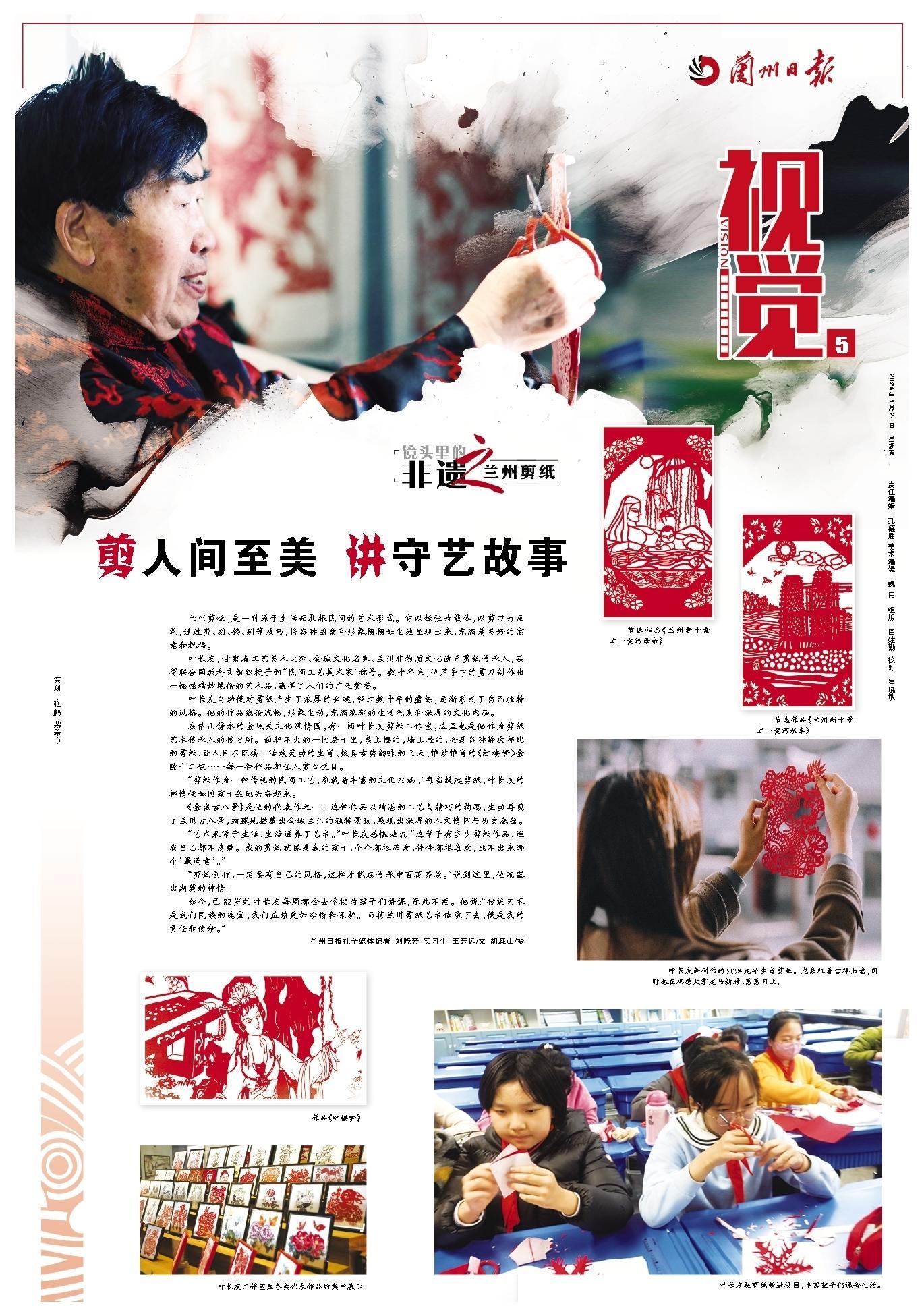 如今,已82歲的葉長(zhǎng)友每周都會(huì)去學(xué)校為孩子們講課,樂此不疲。他說:“傳統(tǒng)藝術(shù)是我們民族的瑰寶,我們應(yīng)該更加珍惜和保護(hù)。而將蘭州剪紙藝術(shù)傳承下去,便是我的責(zé)任和使命。”