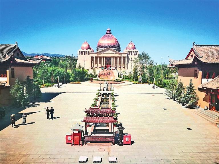 “驪靬古城”又被稱(chēng)為“和平之城”。古城建在原古寺金山寺舊址上,城墻氣勢(shì)恢宏,東西南北各建門(mén)樓,四角各筑角樓。城內(nèi)建筑錯(cuò)落布局,尤以外形具羅馬式建筑風(fēng)格的“萬(wàn)神殿”最醒目,金色穹頂,羅馬石柱,刻有圖案,工藝精致,清新典雅。拾級(jí)上城墻,四周杏黃旗圍繞,迎風(fēng)獵獵。城東古羅馬廣場(chǎng)小巧玲瓏,別具一格;城南祁連山山巒相連,松柏林立;城西巍峨俊秀的胭脂山遙遙相對(duì);城北建有幸福樂(lè)園。遠(yuǎn)眺,永昌縣城全貌一覽無(wú)余。
