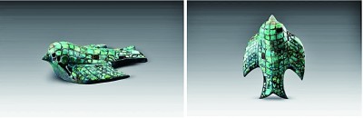 陜西省清澗縣寨溝商代遺址出土的鑲綠松石銅燕 中國社會科學院考古研究所供圖