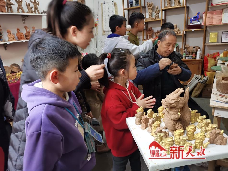 展示架上,一眼望去,那一個(gè)個(gè)嘴巴微張、憨態(tài)可掬,融入卡通元素且寓意新年萬事順?biāo)臁⒃⒁怙L(fēng)調(diào)雨順的生肖“拜年龍”“大嘴龍”“萌萌龍”神態(tài)各異,讓人感受到吉祥喜慶的年味。而那些以十二生肖為題材的其他泥塑作品亦是栩栩如生、活靈活現(xiàn),頓時(shí)讓這一方天地變得可愛而親近。