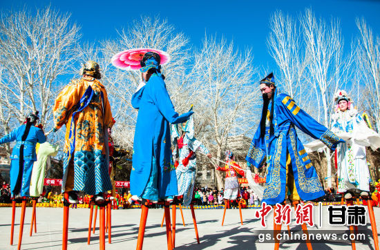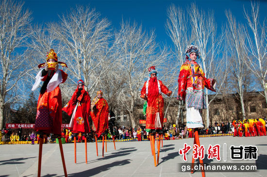 2024年春節(jié)假期,敦煌市組織城鄉(xiāng)9支社火隊(duì)在城區(qū)開展社火展演活動(dòng),讓游客近距離體驗(yàn)和感受敦煌民俗文化的獨(dú)特魅力,營(yíng)造紅紅火火、熱鬧喜慶的節(jié)日氛圍。王斌銀 攝