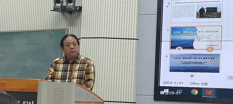 馮玉雷一直認(rèn)認(rèn)真真,埋頭干事。他心中有一個(gè)非常宏大的目標(biāo),向著這個(gè)目標(biāo)行進(jìn)過程中,腳踏實(shí)地。前幾年他在西北師范大學(xué)首開公選課《中國(guó)玉文化》,把玉文化作為專門的一門課來講,具有開拓性。玉文化作為一門學(xué)科,在全國(guó)各大高校此前還沒有先例,馮玉雷先生做了一件非常有意義的事情。這次講座對(duì)我非常有啟發(fā)。從這門課的內(nèi)涵來講,其實(shí)又是一個(gè)延續(xù):對(duì)傳統(tǒng)文化也好,考古文化也好,對(duì)甘肅省乃至整個(gè)中華大地,從玉文化開始出現(xiàn),發(fā)展到現(xiàn)在,就是一種延續(xù)。玉和玉器至堅(jiān)至柔,至圣至潔,卻默默無言,但是它們告訴了我們很多以前不知道或者沒有意識(shí)到的信息,從重見天光的那一刻起,有無數(shù)信息在源源不斷的釋放,就看人們?nèi)绾卫斫?,如何解讀。如果不研究、發(fā)現(xiàn)這些玉器的內(nèi)涵,那還是相當(dāng)于某種意義上的沉睡。馮玉雷創(chuàng)作小說,研究玉文化,還組織十幾次考察活動(dòng),國(guó)內(nèi)的有些大家都參與,這像不像流動(dòng)的學(xué)術(shù)討論會(huì)?他的長(zhǎng)篇小說《禹王書》出版剛剛一個(gè)月,據(jù)我所知,“玉文化、神話小說《禹王書》的學(xué)術(shù)背景”講座是首次分享,他把研究成果、創(chuàng)作成果第一時(shí)間通過課堂與同學(xué)們分享,我仿佛看到他帶著學(xué)生勇往直前,義無反顧地向前走著,這本身就是玉文化精神的傳承和發(fā)揚(yáng)!我感覺到馮玉雷《禹王書》的思緒上下翻飛,縱橫馳騁,騰躍五千年。小說中有非常核心的價(jià)值內(nèi)涵,就是玉文化本身所具有的、深深進(jìn)入到我們民族根脈中的文化內(nèi)涵,同時(shí),又有就是對(duì)文學(xué)的一種激發(fā)。小說中的神話人物以及他們之間的交流、故事、語言,還有那些玉器,都非常神奇??梢灶A(yù)想,這本書的后延性非常長(zhǎng)遠(yuǎn),希望玉文化班的同學(xué)能夠在馮玉雷老師帶領(lǐng)下,傳承發(fā)揚(yáng)玉文化,完成從璞玉到玉器的轉(zhuǎn)化!