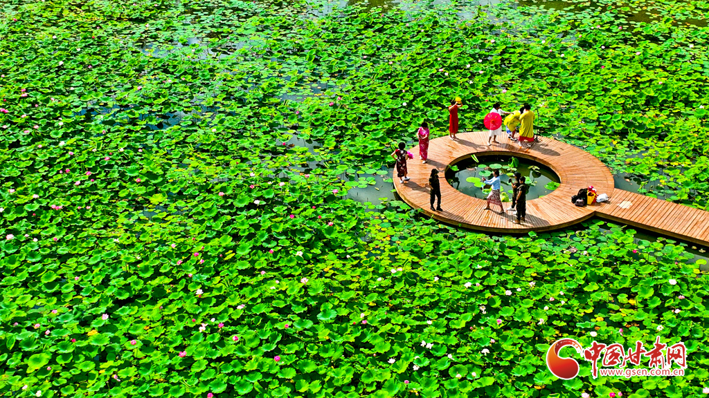 6月30日,雨后天晴的甘肅省張掖國家濕地公園碧水藍天、綠意盎然,荷塘里的荷花相繼綻放,處處呈現(xiàn)出蓬勃生機,眾多游客和市民在葦溪、湖泊間游玩拍照,親近大自然。