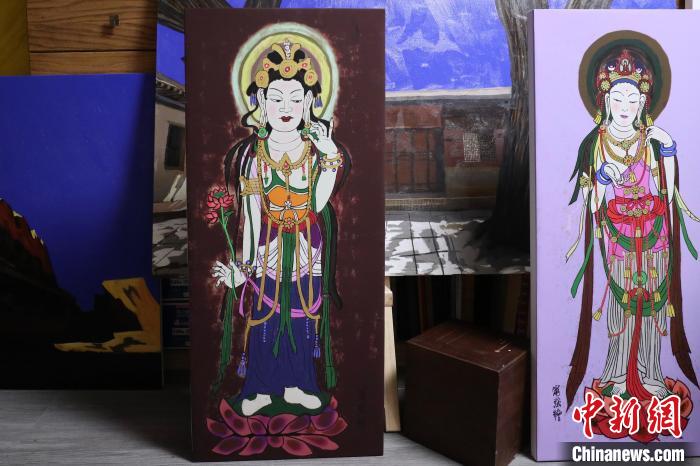 北京外國語大學藝術研究院院長寧強以敦煌莫高窟壁畫為靈感創(chuàng)作的繪畫作品?!⌒煅┈?nbsp;攝