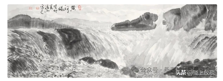 藝無止境。30多年來,何建祥先生一方面不斷汲取馬西園等老一輩藝術(shù)家豐厚的藝術(shù)養(yǎng)分;一方面道法自然,不斷汲取來自黃河的天然養(yǎng)分。這使得何建祥先生的畫既有師承:又有突破。他畫黃河,善用景別,善用焦墨,善用散鋒,善用皴擦,把“黃河之水天上來,奔流到海不復(fù)回”的磅氣勢表現(xiàn)得十分貼切,已然形成了自己的藝術(shù)面貌和個人風(fēng)格。