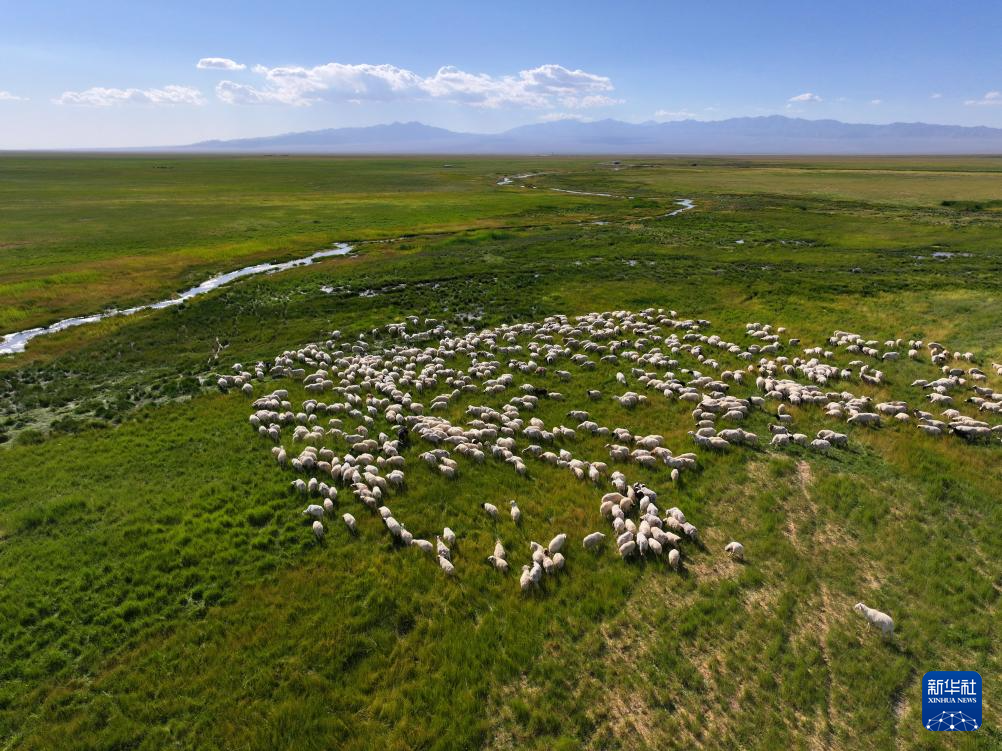 盛夏時節(jié),地處甘肅省酒泉市阿克塞哈薩克族自治縣阿伊納鄉(xiāng)境內(nèi)的大、小蘇干湖濕地,綠草如茵,牛羊成群,呈現(xiàn)出一幅生機勃勃的草原生態(tài)畫卷。