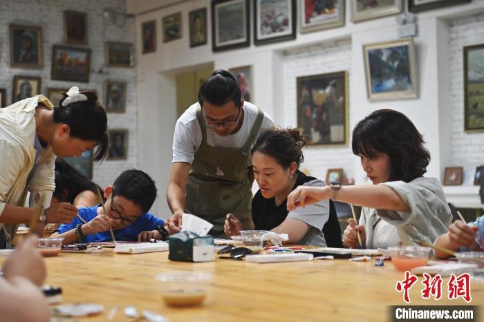 8月20日,甘肅敦煌莫高里工匠村內(nèi),學(xué)員體驗(yàn)敦煌文化研學(xué)課程。工匠村開(kāi)設(shè)了泥板畫(huà)、彩繪、雕塑制作、剪紙、農(nóng)耕體驗(yàn)等課程,現(xiàn)已發(fā)展成為一個(gè)集敦煌文化講堂、壁畫(huà)書(shū)法研習(xí)、美術(shù)設(shè)計(jì)、彩塑制作教學(xué)、篆刻藝術(shù)、傳統(tǒng)釀酒體驗(yàn)、農(nóng)業(yè)產(chǎn)業(yè)發(fā)展等于一體的多功能實(shí)訓(xùn)基地。中新社記者 李亞龍 攝