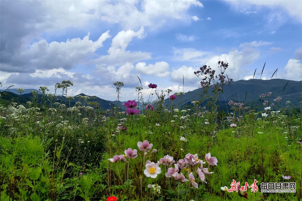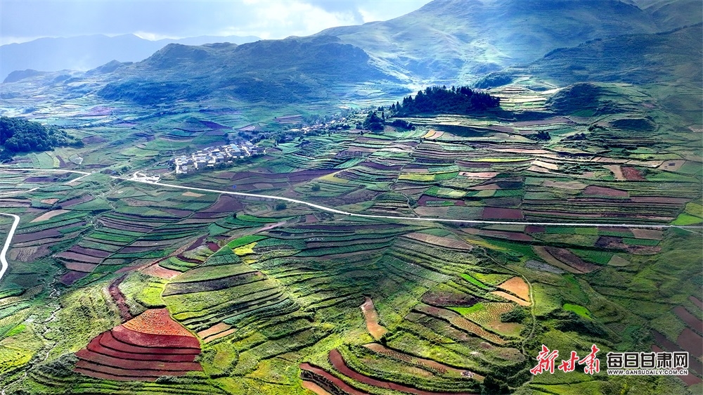高山花海,紅土梯田,秋日的隴南武都云上馬營猶如一頂七彩的花環(huán),圍繞在高山之巔,清新濕潤的空氣中,飄著淡淡的花香和藥香,光影交織在松樹林和村莊之間,一陣風(fēng)吹過,仿佛整片大地都與陽光在輕柔地呼吸。