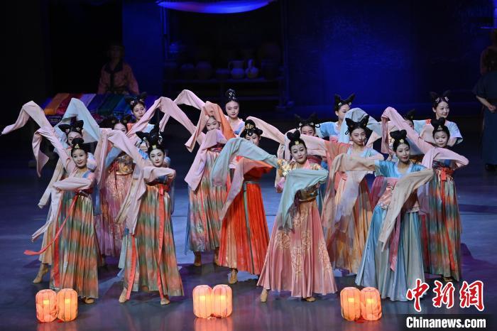 9月5日晚,甘肅敦煌旅游熱度不減,眾多游客觀看大型洞窟式沉浸體驗(yàn)劇《樂(lè)動(dòng)敦煌》。該劇溯源敦煌文化,借助對(duì)莫高窟壁畫(huà)、藏經(jīng)洞古籍進(jìn)行解讀,用全息投影、3D威亞等高科技手段,以全沉浸式的呈現(xiàn)方式,演繹西域少年追尋藝術(shù)的傳奇故事。劇中運(yùn)用了琵琶、排簫、阮等民族樂(lè)器及仿制敦煌古樂(lè)器的音色,通過(guò)胡旋舞、腰鼓舞、琵琶舞等典型舞蹈,展現(xiàn)了敦煌壁畫(huà)中的樂(lè)舞盛景,全面展現(xiàn)敦煌傳承千年的樂(lè)舞文化魅力。九美旦增 攝