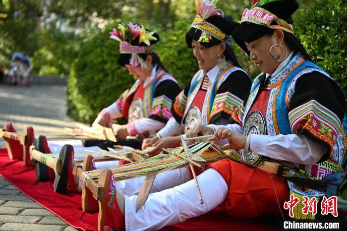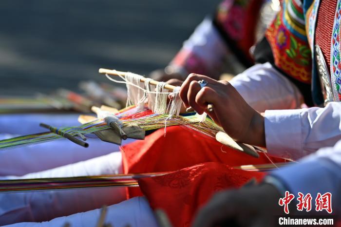 9月26日,甘肅省甘南藏族自治州舟曲縣,當?shù)夭刈鍕D女紡織錦帶吸引游人駐足觀賞。錦帶是舟曲藏族婦女用以束腰、扎靴、攏發(fā)乃至點綴服飾的花帶子,艷麗多彩、圖案優(yōu)美。每逢吉慶節(jié)日,藏族婦女穿戴的華麗盛裝就需要少則五、六條,多則十幾條寬窄長短相宜的錦帶來裝飾。據(jù)介紹,藏族織錦帶技藝歷史悠久,一千多年以前,古羌族和吐蕃已有了較發(fā)達的手工編織技術,在艱難的生活條件下對服飾等生活用品除實用功能之外,已經(jīng)有了強烈的審美追求,是研究舟曲羌藏文化的“活化石”。中新社記者 九美旦增 攝