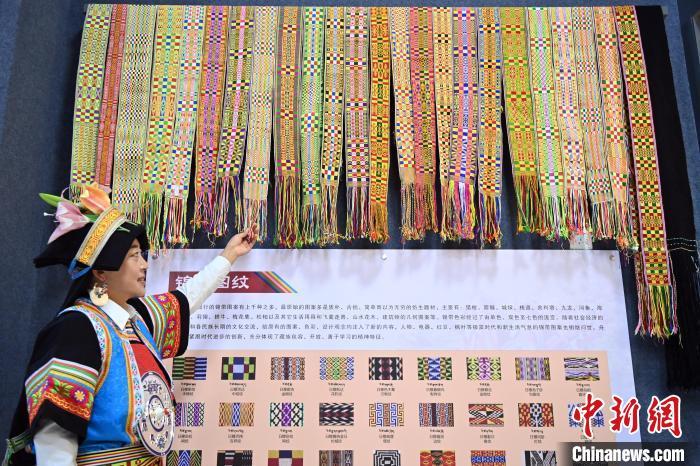 9月26日,甘肅省甘南藏族自治州舟曲縣,當?shù)夭刈鍕D女展示紡織好的錦帶。錦帶是舟曲藏族婦女用以束腰、扎靴、攏發(fā)乃至點綴服飾的花帶子,艷麗多彩、圖案優(yōu)美。每逢吉慶節(jié)日,藏族婦女穿戴的華麗盛裝就需要少則五、六條,多則十幾條寬窄長短相宜的錦帶來裝飾。據(jù)介紹,藏族織錦帶技藝歷史悠久,一千多年以前,古羌族和吐蕃已有了較發(fā)達的手工編織技術,在艱難的生活條件下對服飾等生活用品除實用功能之外,已經(jīng)有了強烈的審美追求,是研究舟曲羌藏文化的“活化石”。中新社記者 九美旦增 攝
