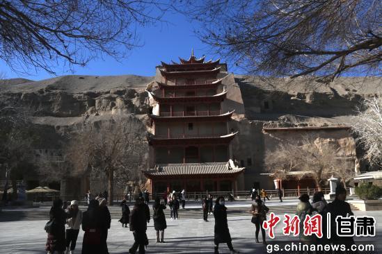 初冬時節(jié),游客走進(jìn)世界文化遺產(chǎn)甘肅敦煌莫高窟欣賞燦爛的石窟藝術(shù),品味悠久的敦煌歷史文化。