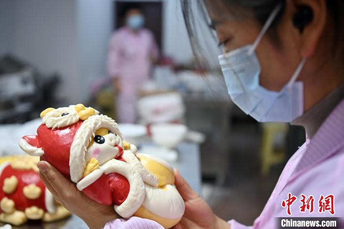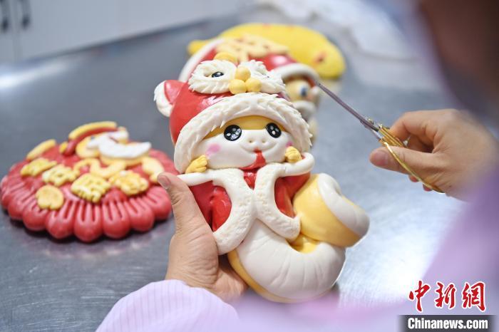圖為面點師制作的“萌蛇”花饃。中新社記者 九美旦增 攝