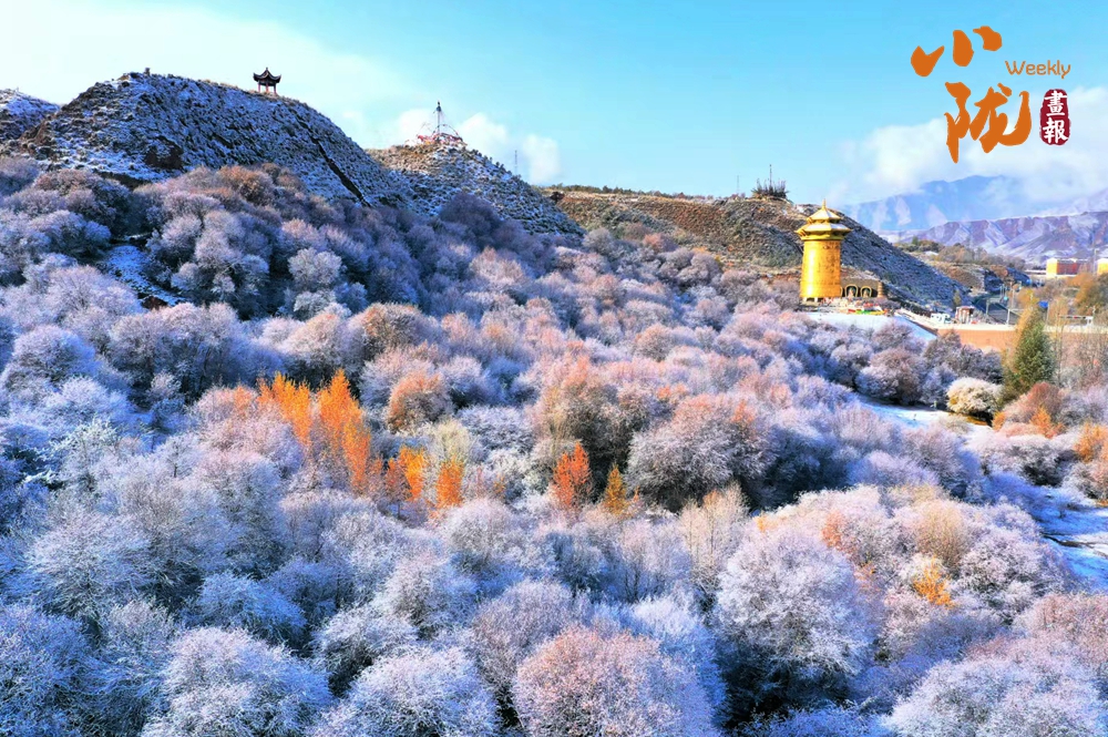 祁連山下,被譽為“空中草原”的康樂草原段披上了銀裝,皓然一色,如詩如畫。