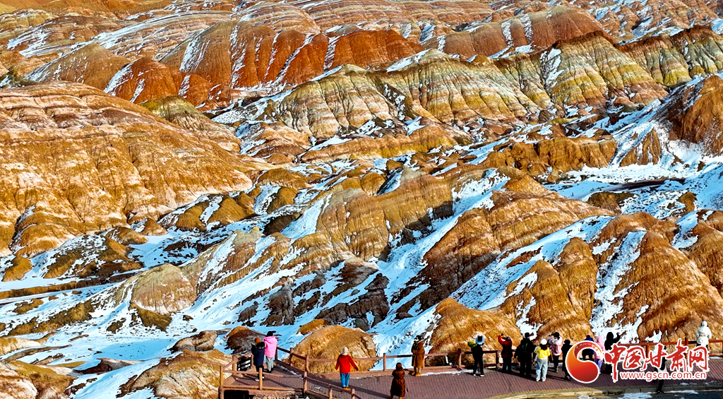 春節(jié)假期,張掖市七彩丹霞景區(qū)內(nèi)人頭攢動(dòng),全國(guó)各地游客慕名而來,欣賞宛如夢(mèng)幻仙境般的雪浴丹霞地貌景觀,在領(lǐng)略大西北壯美景色中歡歡喜喜過大年。