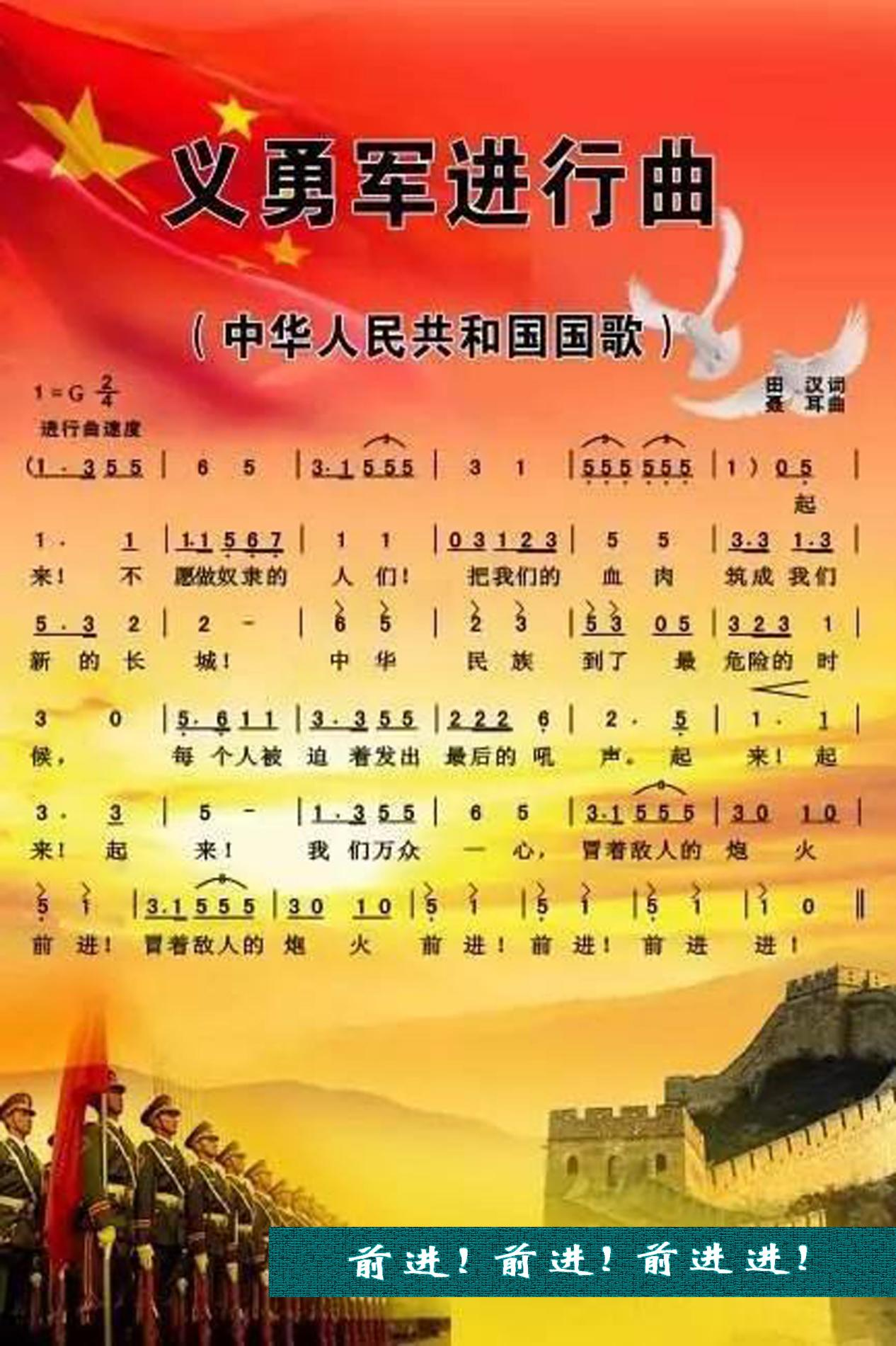 ?、嗲斑M(jìn)!前進(jìn)!前進(jìn)進(jìn)?。骸读x勇軍進(jìn)行曲》這一段歌詞是作曲家聶耳改定的。為了使歌曲曲調(diào)和節(jié)奏更加有力,聶耳把田漢原來(lái)的“我們?nèi)f眾一心,冒著敵人的飛機(jī)大炮前進(jìn)。前進(jìn)!前進(jìn)!前進(jìn)!”改為“我們?nèi)f眾一心,冒著敵人的炮火,前進(jìn)!冒著敵人的炮火,前進(jìn)!前進(jìn)!前進(jìn)進(jìn)!”全國(guó)政協(xié)委員、國(guó)家一級(jí)指揮、解放軍軍樂(lè)團(tuán)前團(tuán)長(zhǎng)于海曾談到:“前進(jìn),前進(jìn),前進(jìn)進(jìn)!”這七個(gè)字堪稱(chēng)國(guó)歌的點(diǎn)睛之筆。“前進(jìn)進(jìn)”的節(jié)奏感,凸顯了國(guó)歌精神的進(jìn)行時(shí)態(tài)。正是這種精神一直在指引我們,激勵(lì)著我們。