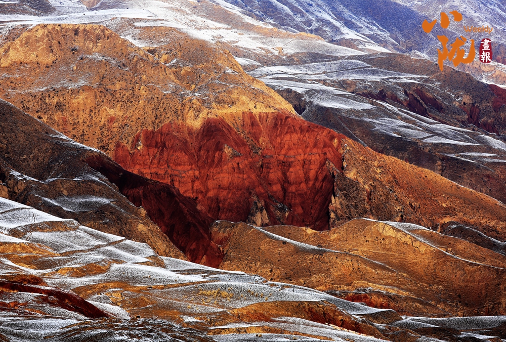 近日,一場春雪悄然飄落。山間、鄉(xiāng)村和城市像似披上薄薄的輕紗,更加詩意盎然。本就有著獨(dú)特韻味的山巒,在白雪的映襯下,層理交錯(cuò)、色彩斑斕,顯得格外艷麗多彩。