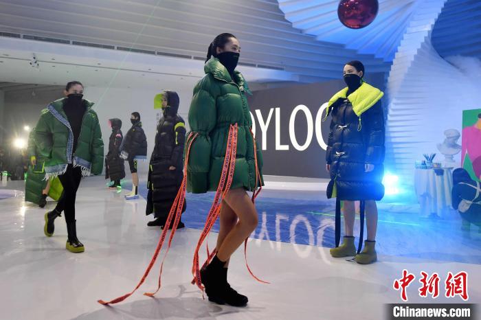 本屆青島時(shí)裝周采用“線上+線下”的方式共組織40場(chǎng)發(fā)布秀。 王海濱 攝