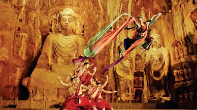 為此,主創(chuàng)人員對(duì)龍門(mén)石窟中生動(dòng)多樣的藝術(shù)造型進(jìn)行了全面梳理。“我們請(qǐng)教專(zhuān)家,翻閱、學(xué)習(xí)大量典籍,深入理解龍門(mén)石窟‘伎樂(lè)天’形象;同時(shí)把握龍門(mén)‘金剛’不同于云岡石窟、敦煌壁畫(huà)的特點(diǎn),它更為‘中國(guó)化’,更加樸實(shí)、有力量。”李鵬說(shuō),團(tuán)隊(duì)在此基礎(chǔ)上,進(jìn)一步進(jìn)行藝術(shù)化處理,編排成舞蹈,做到“每一個(gè)造型定格時(shí),體態(tài)在龍門(mén)石窟中都有據(jù)可依,可以找到原型”。