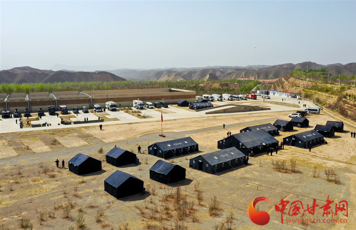 16頂依山臨時搭建的警用帳篷就是一個個指揮部,甘肅省公安廳在甘肅警察職業(yè)學(xué)院舉辦的廳機關(guān)實戰(zhàn)大練兵應(yīng)急處突拉動演練中,作為指揮機關(guān)的廳屬單位29名處(局)長和14名市、州公安局局長正在接受近乎嚴(yán)苛的考驗。
