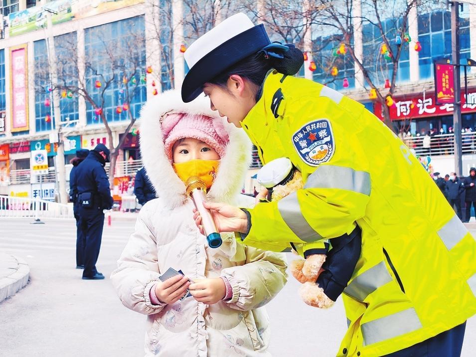 2月11日,合水縣公安民警巧借民俗活動群眾聚集的有利時機開展交通安全宣傳活動。新甘肅·甘肅法治報通訊員李曉攝