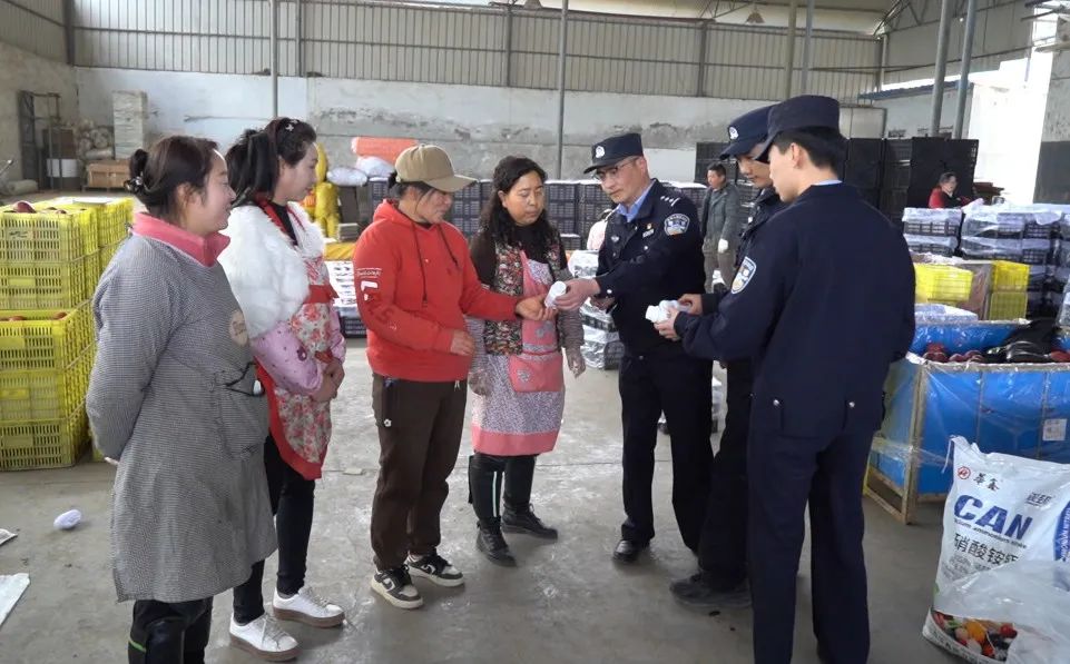 除了巡邏防控和矛盾調(diào)解,花牛派出所還開(kāi)設(shè)了“田間課堂”,向果農(nóng)積極開(kāi)展普法宣傳。在農(nóng)資市場(chǎng)休息區(qū),民警們拉起橫幅,向果農(nóng)們講解防盜、防騙、防火等安全知識(shí)。民警馬嘯不時(shí)翻看手機(jī)里的微信群說(shuō):“我們主動(dòng)將果農(nóng)納入微信群,不定時(shí)推送防騙知識(shí),果農(nóng)們遇到拿不準(zhǔn)的情況也會(huì)及時(shí)向我們咨詢。”
