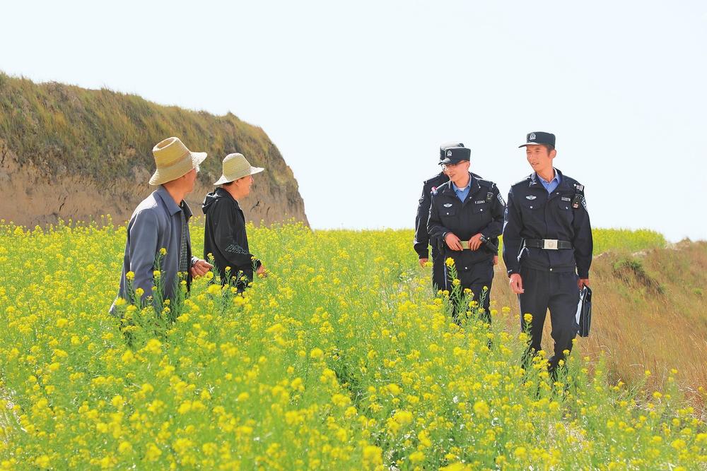 民警田間地頭走訪群眾。5月15日,定西市公安局安定分局組織民輔警開展社情民意大走訪,面對面傾聽群眾呼聲、征求群眾意見,解決實際困難,宣講安全知識,不斷增強人民群眾的獲得感、幸福感、安全感。  新甘肅·甘肅法治報通訊員楊永剛攝
