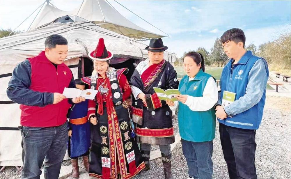黨城灣鎮(zhèn)綜治中心組織網(wǎng)格員走進(jìn)牧區(qū)開(kāi)展法治宣傳活動(dòng)(2024年8月20日拍攝)。 肅北縣委政法委供圖