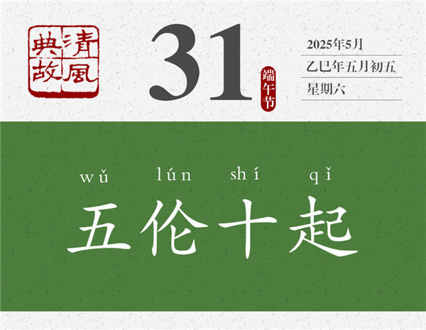 第五倫兄長(zhǎng)的兒子經(jīng)常生病,他晚上要起來(lái)十次去照料,這說(shuō)明他有私心。但是,他寧肯自己晚上起來(lái)十次去照料,也從未利用自己的職位或影響力讓別人代勞,這說(shuō)明他公私分明。后人遂以“五倫十起”為典,形容于私有情分,于公有原則。李瀚《蒙求》:“劉整交質(zhì),五倫十起。”劉整,南朝齊梁時(shí)人,任職中軍參軍,為人刻薄而貪婪。有一次,侄子在他家里住了十二天,他便親自上門去向寡嫂討米、索償飯費(fèi),寡嫂出門未歸,他竟然拿走了寡嫂家的車帷以作抵押。