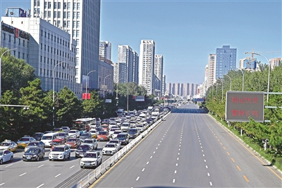 圖③:車輛在沈陽崇山中路停車?guó)Q笛。 新華社記者 周華 攝