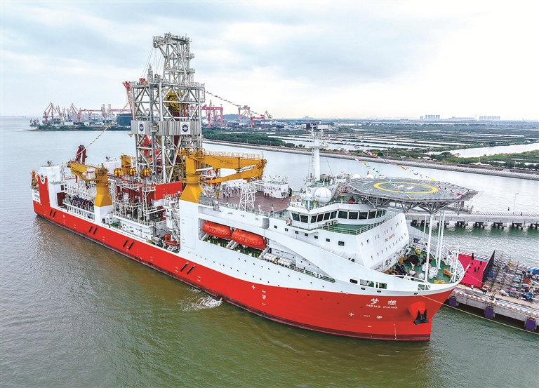 “十四五”時(shí)期,我國(guó)持續(xù)加強(qiáng)關(guān)鍵核心技術(shù)攻關(guān)和成果應(yīng)用,加快高端裝備、先進(jìn)制造等領(lǐng)域關(guān)鍵技術(shù)攻關(guān),推動(dòng)傳統(tǒng)產(chǎn)業(yè)向高端化、智能化、綠色化轉(zhuǎn)型。圖為擁有最大11000米的鉆深能力、我國(guó)自主設(shè)計(jì)建造的首艘大洋鉆探船“夢(mèng)想”號(hào),該船于“十四五”時(shí)期正式入列(資料圖片)。新華社記者 劉大偉 攝