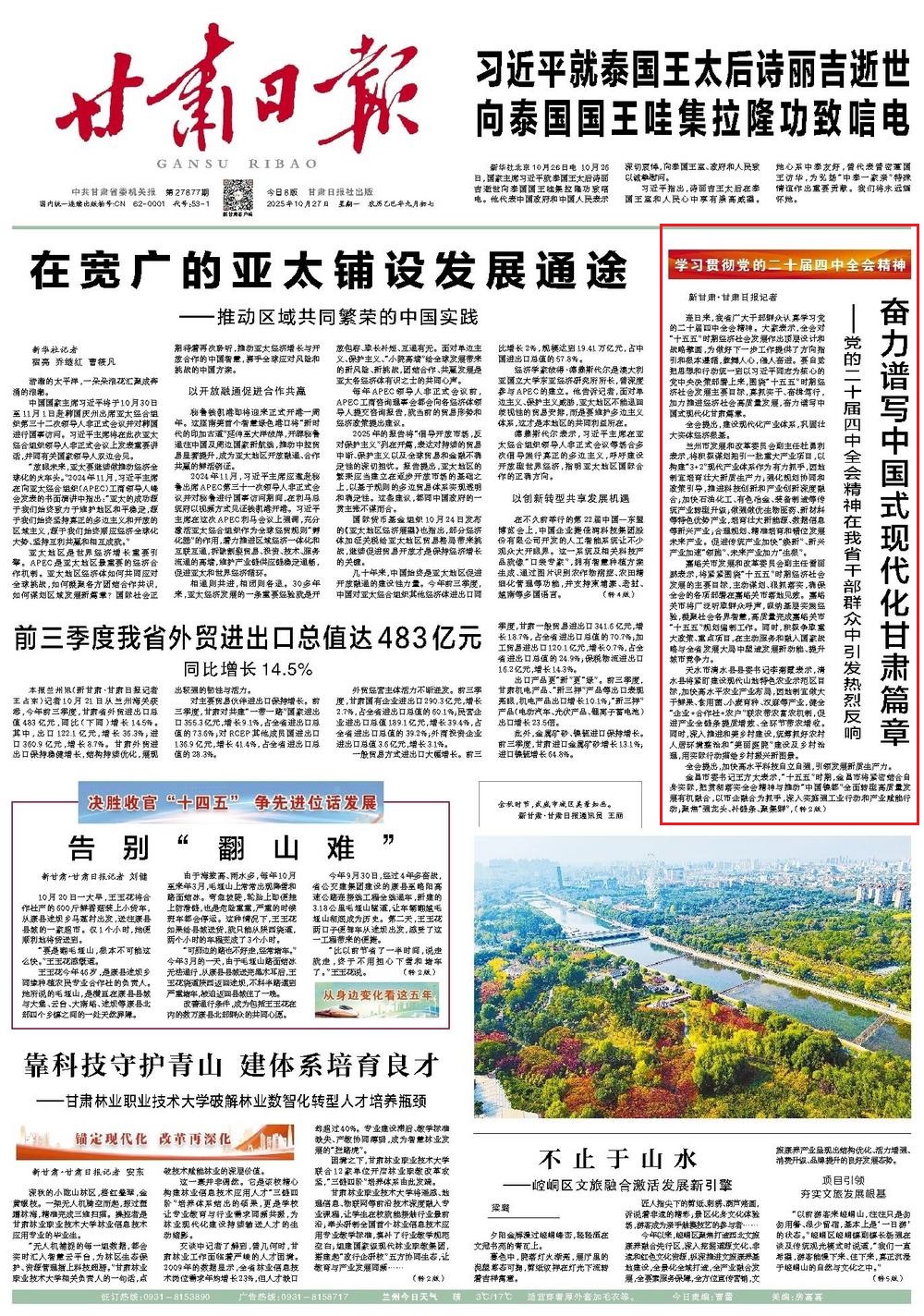 《甘肅日報(bào)》2025年10月27 第1版