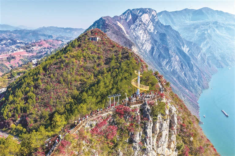 二十屆中央紀(jì)委四次全會強調(diào),要把落實黨中央重大決策部署和習(xí)近平總書記重要指示批示作為政治監(jiān)督的重中之重,盯住生態(tài)環(huán)境保護等重要部署,加強監(jiān)督檢查,保障落實到位。各級紀(jì)檢監(jiān)察機關(guān)深入學(xué)習(xí)貫徹習(xí)近平生態(tài)文明思想,立足職能職責(zé)、強化政治監(jiān)督,保障綠水青山就是金山銀山理念落實落地,凝聚起建設(shè)美麗中國的強大合力。圖為游客在重慶巫山三峽龍脊游覽。新華社發(fā)(汪長征 攝)