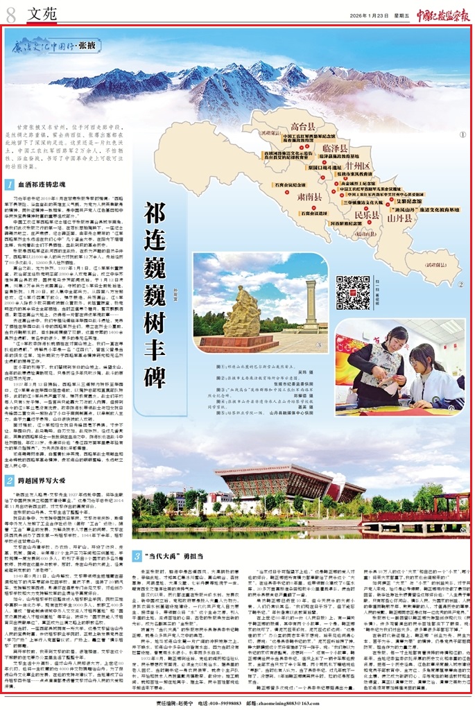 在張掖,每一寸土地都有著獨特的詩情和紅韻。近年來,當?shù)丶o委監(jiān)委依托深厚的歷史文化和豐富的紅色資源,把每一個歷史經(jīng)典、紅色故事深度融入城市建設和黨員干部教育中,全方位、多角度厚植崇廉尚潔的文化土壤,使之成為砥礪初心、淬煉黨性的鮮活教材和生動課堂,真正以清廉之效、清廉之治、清廉之美助力紅色祁連續(xù)寫更加輝煌絢麗的篇章。(孫現(xiàn)富)